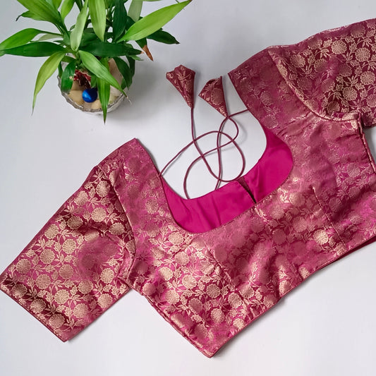 Rani Pink Ikkat cotton blouse with attachable sleeves