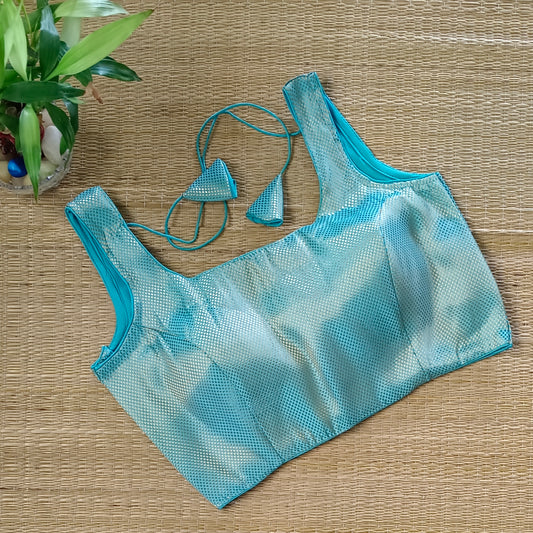 Pastel Blue Brocade Blouse with attachable sleeves (assorted)