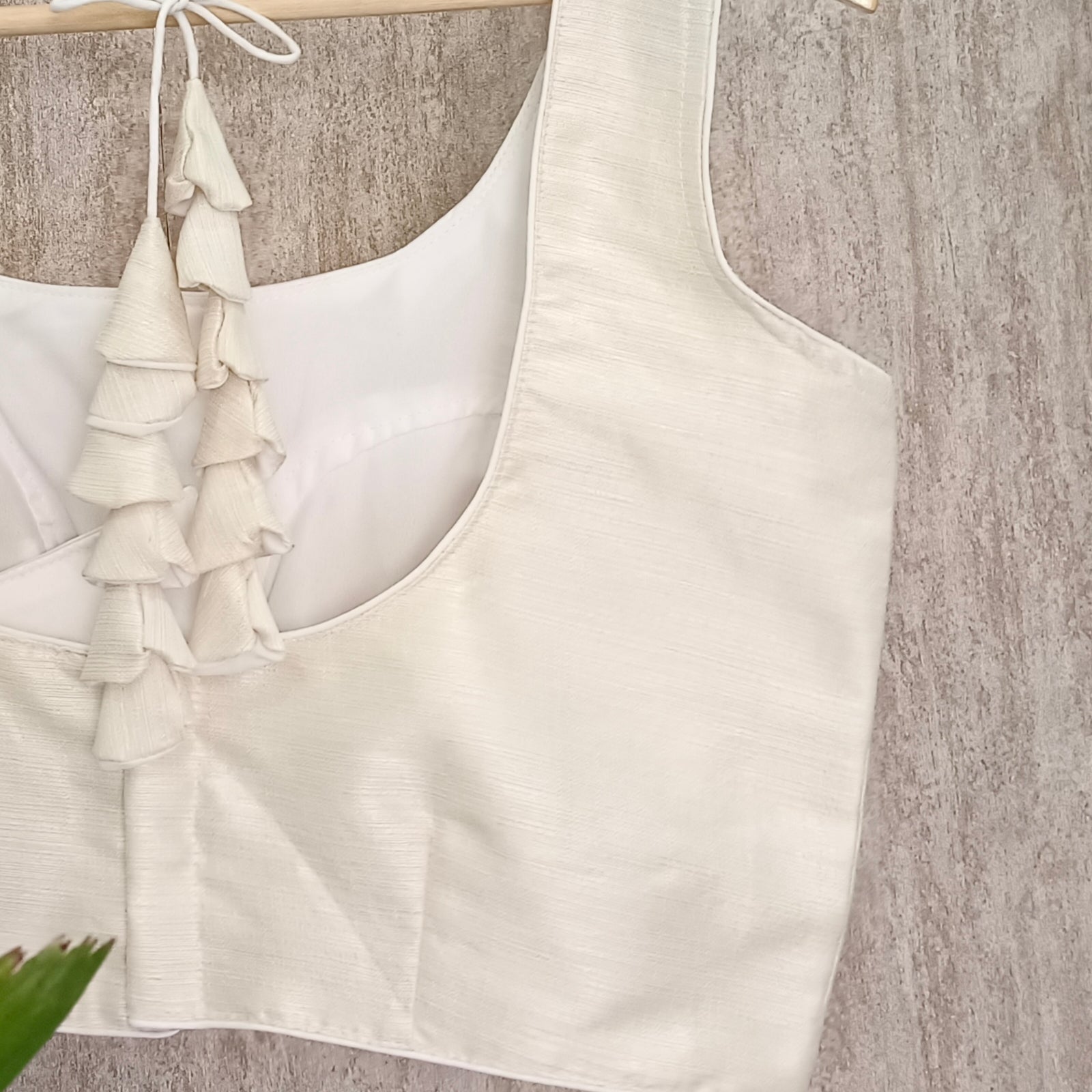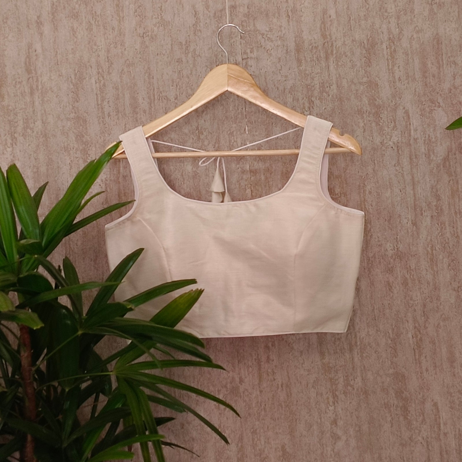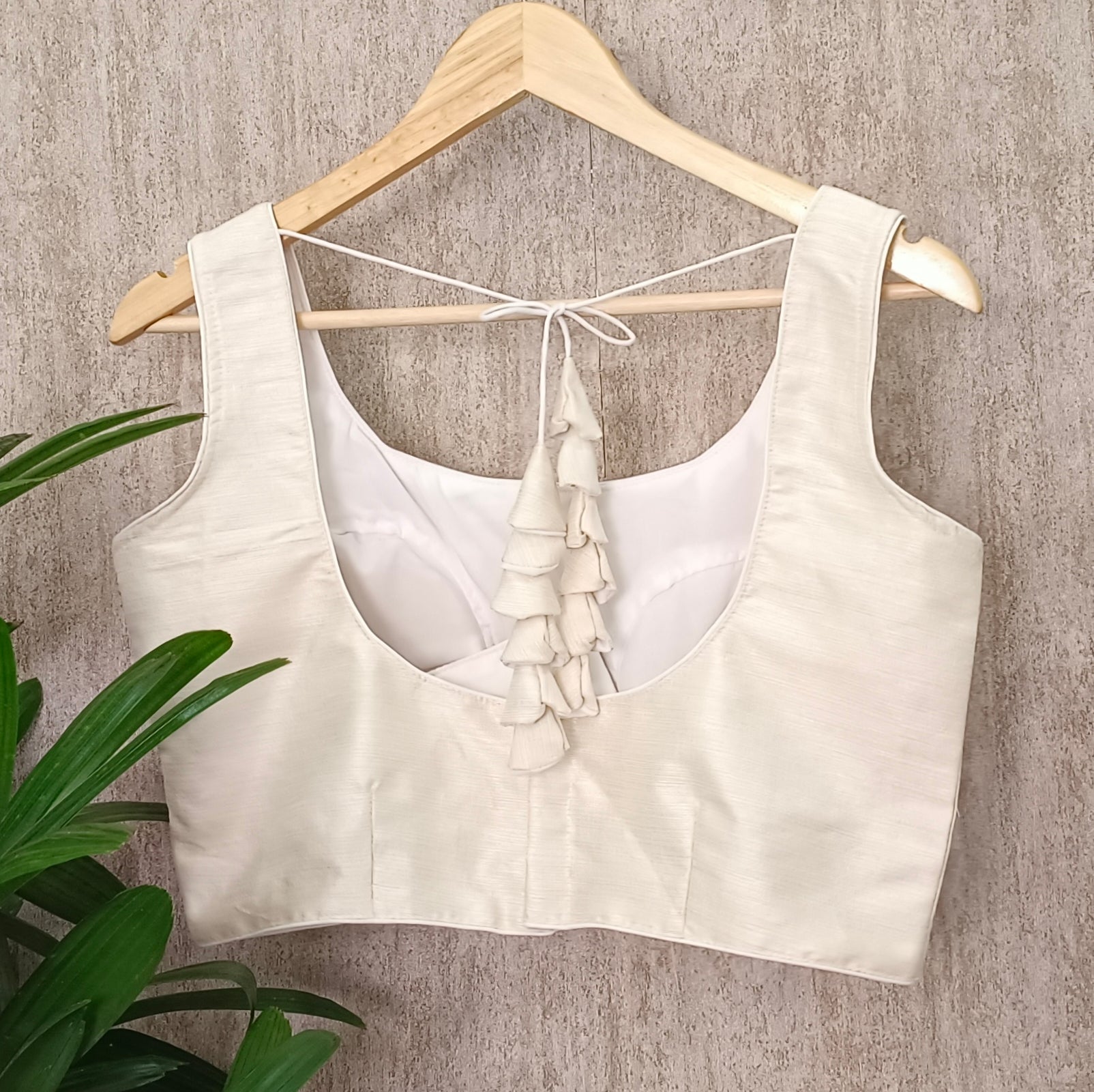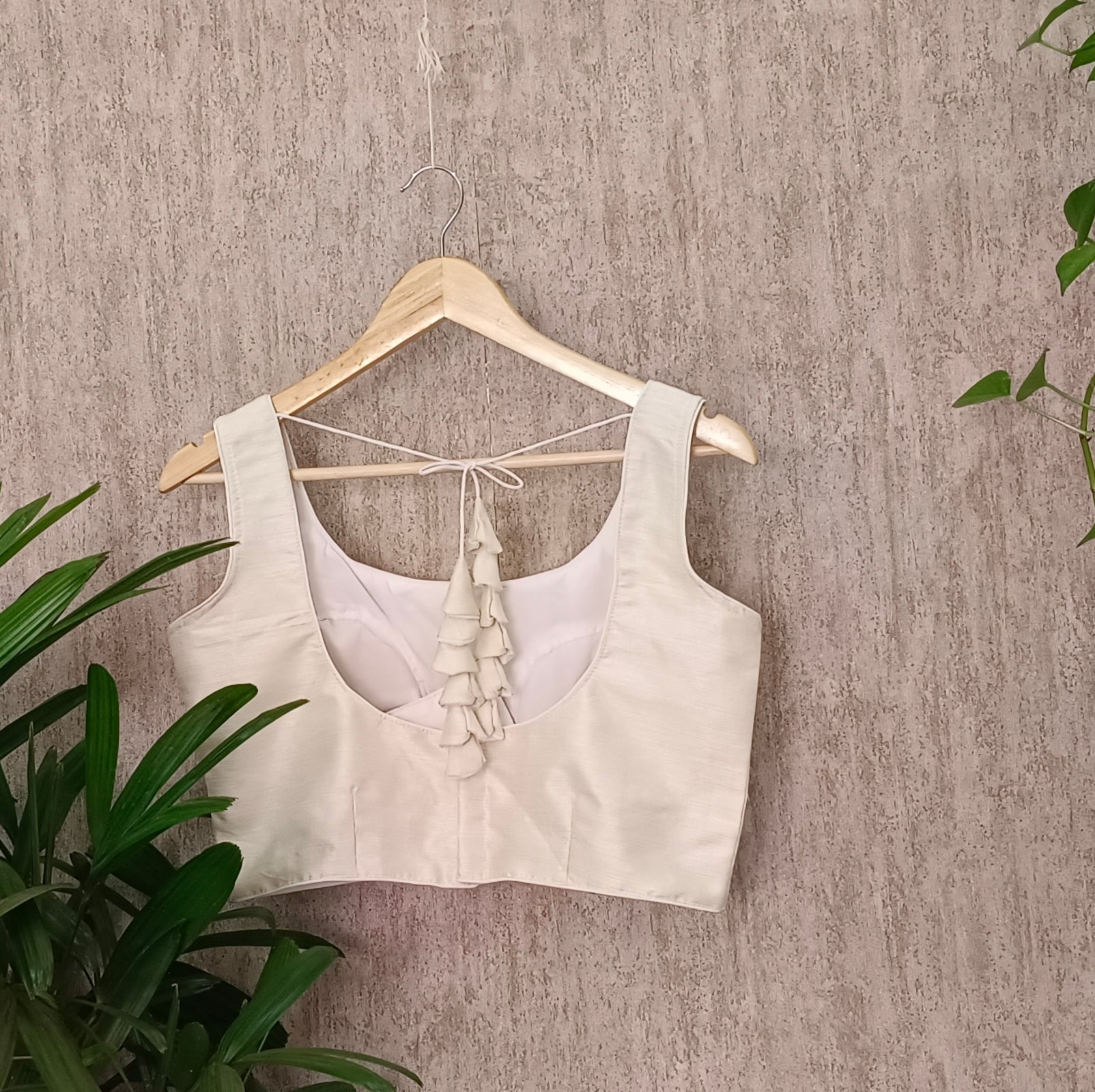 - Opening: Back Hook closure with tie.