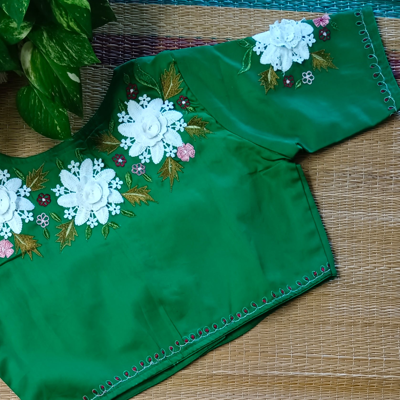 Leaf Green 3D Lace Blouse