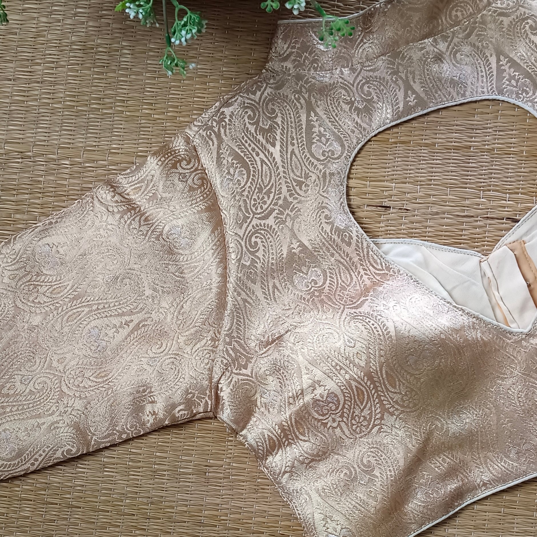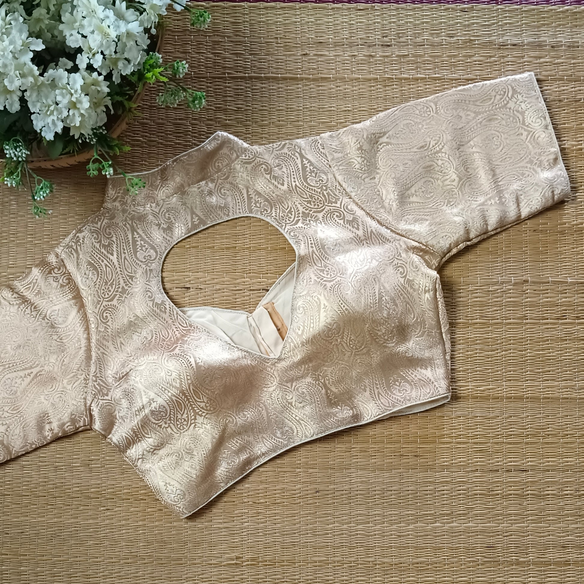 Light Golden High Neck Brocade Blouse
