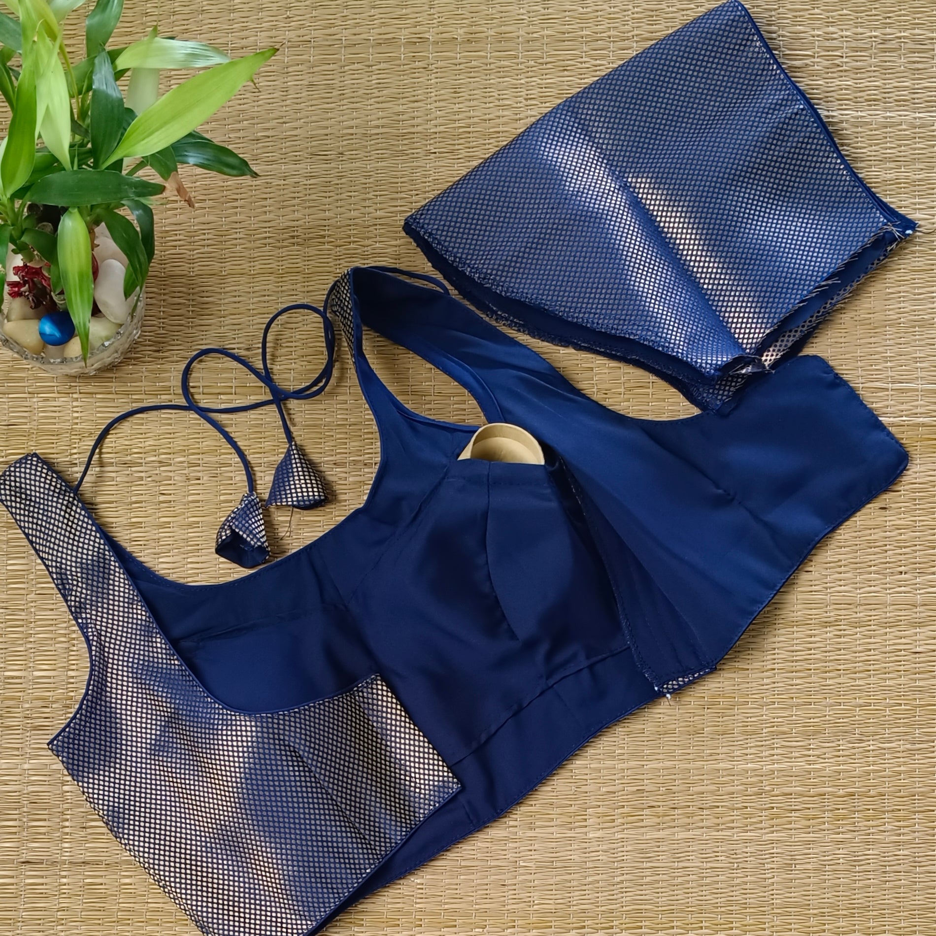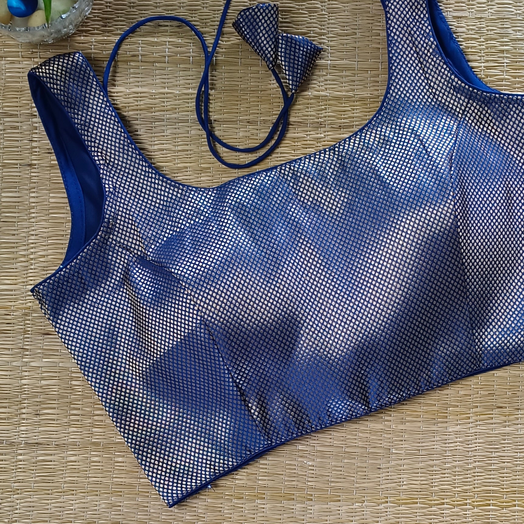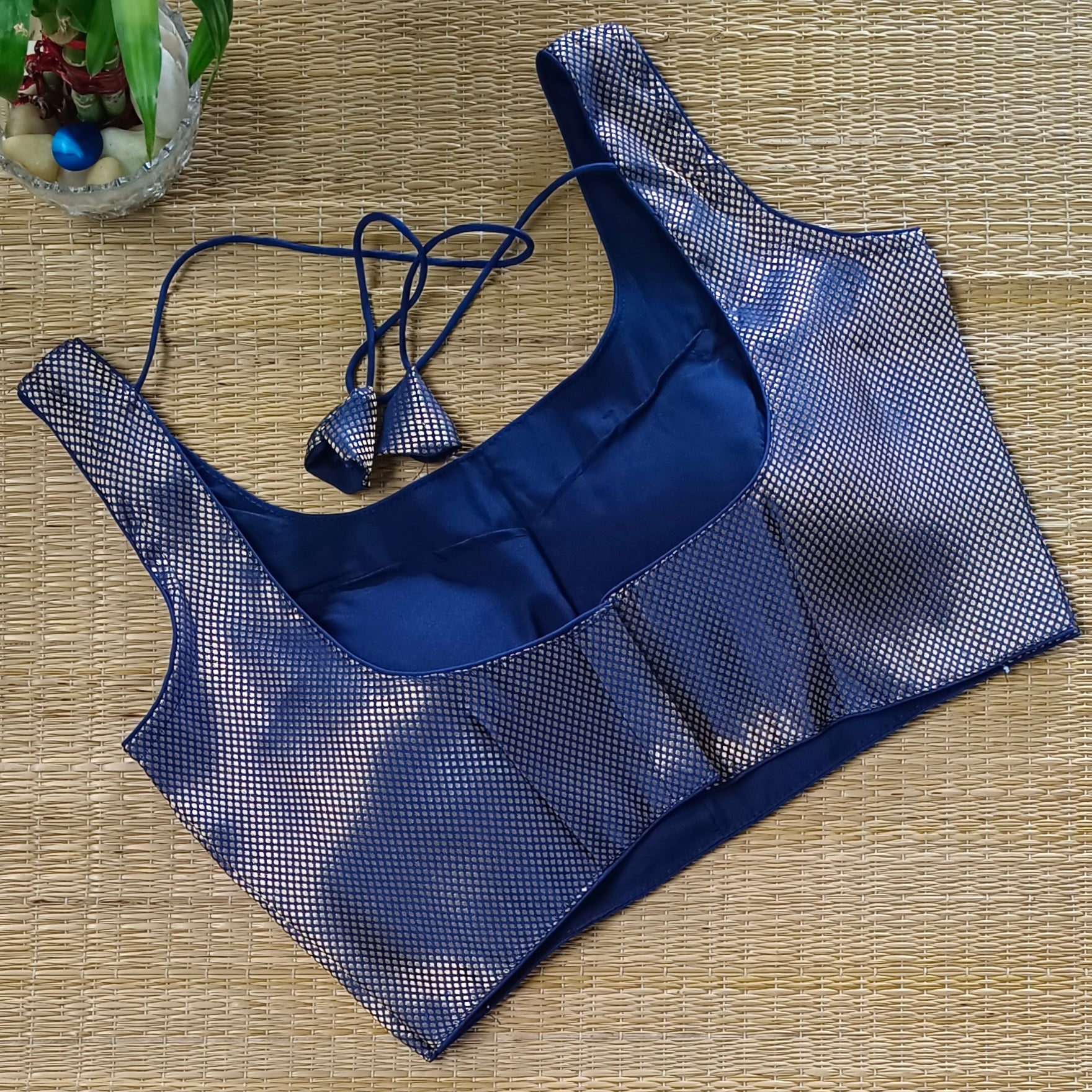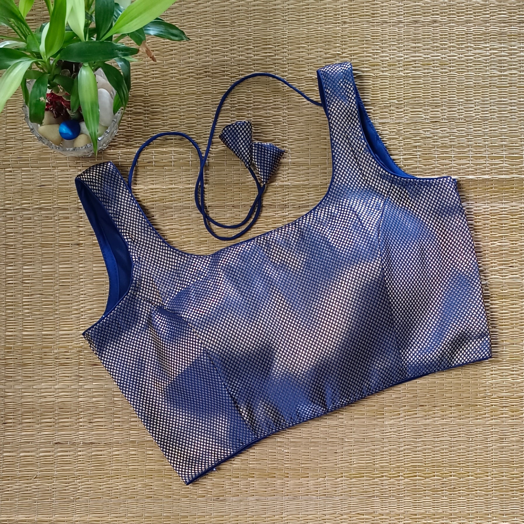 Navy Blue Brocade Blouse with attachable sleeves (assorted)