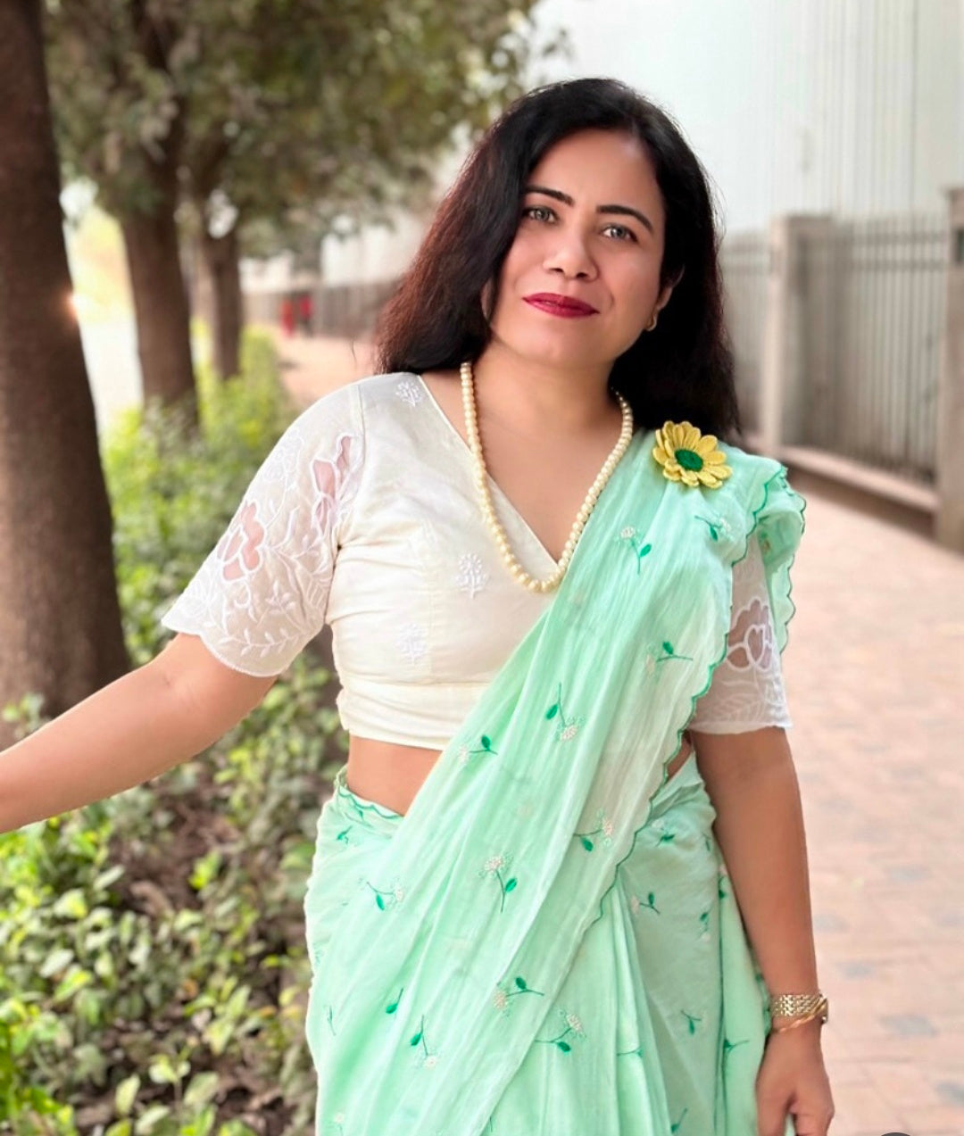 Note: Floral net on sleeves keeps changing in each blouse