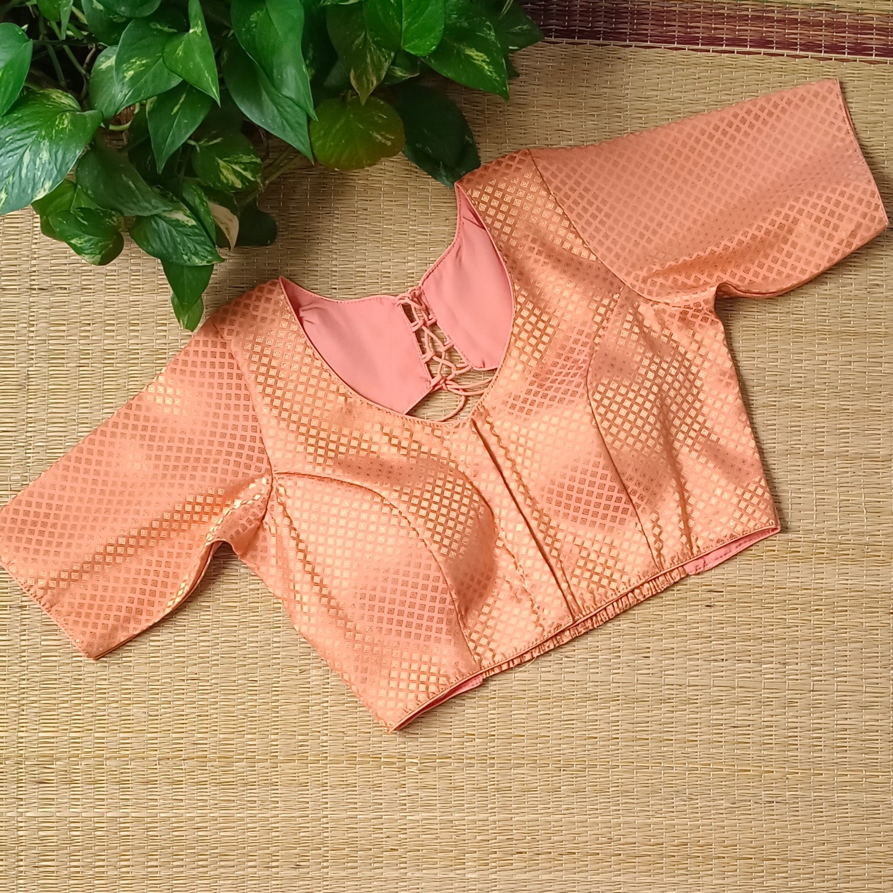 Pastel Orange Back Elastic Brocade Blouse