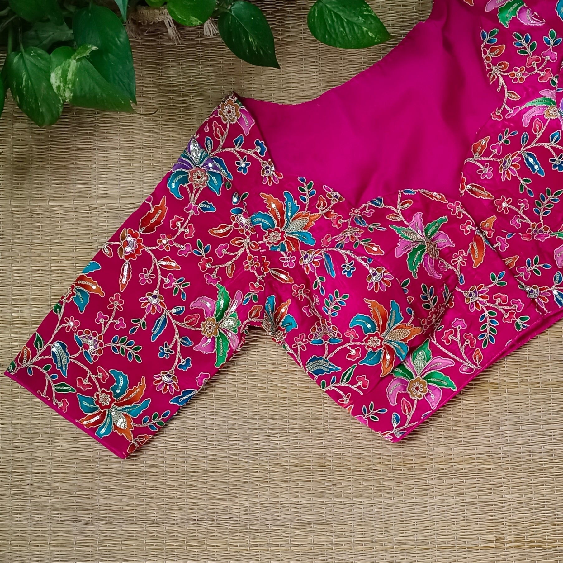 Crepe Blouse with beautiful multicolor code embroidery allover,
