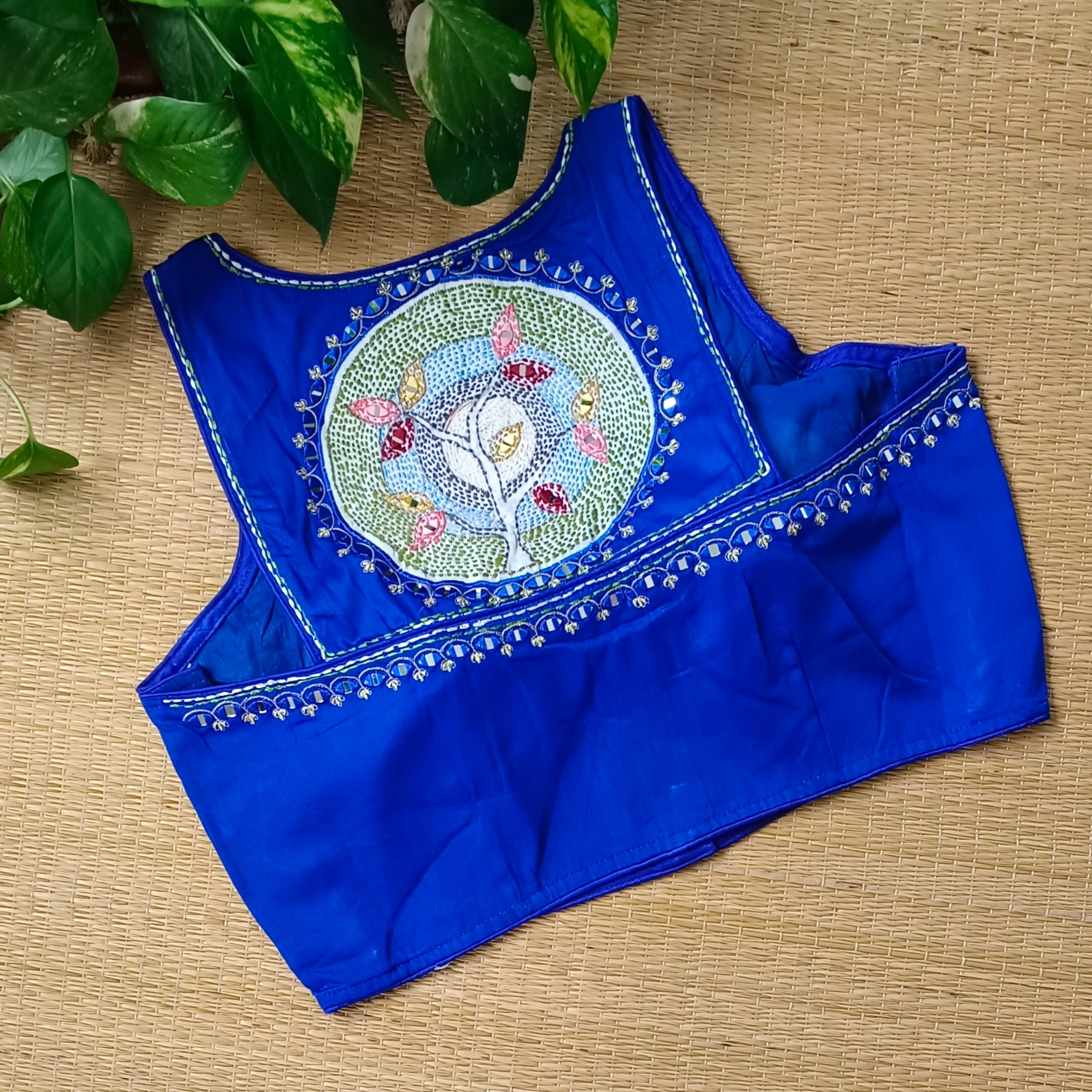 Royal blue mirror & katha work blouse